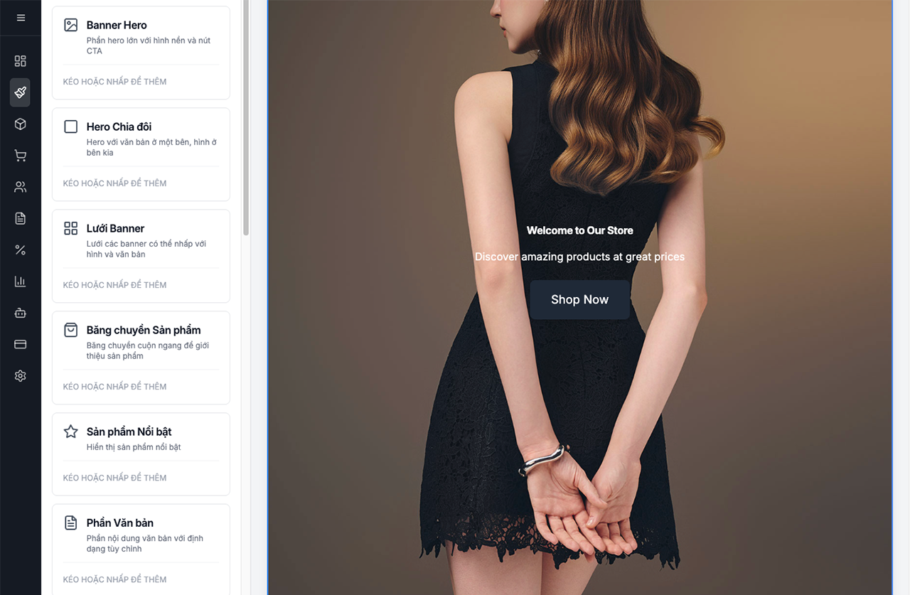 Xây dựng website bán hàng chuyên nghiệp với AI chỉ trong vài phút. Tích hợp sẵn chatbot AI, thanh toán online, quản lý sản phẩm thông minh và tối ưu SEO tự động. Không cần kiến thức lập trình.